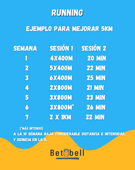 Mi recomendación para quién desea mejorar simplemente, y no se dedica 100% al running, es tener dos sesiones semanales, una con intervalos de corta a media distancia, y otro día por tiempo o distancia (larga), así abarcando varios espectros del running: potencia y explosividad por un lado, y resistancia a baja intensidad (volumen/distancia) en el otro. Son sistemas energéticos distintos del cuerpo. Un día tienes intensidad con distancia corta, y otro día distancia larga a menor intensidad (kilómetraje). No me adentro más en el running, ya que no es mi especialidad (si te interesa correr una maratón, deberías conseguir un entrenador de running ¡Ja!), pero entiendo que hay experimentados que corren regularmente 3-4 veces por semana, como hay profesionales que corren 5-6 días, más de 150Km a la semana (pero ellos viven, duermen, comen y respiran para eso. Tu, mi estimado lector, no. Estoy 99% seguro que no. Así que... no lo intentes).